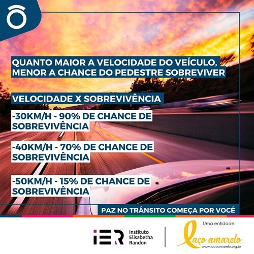 De acordo com o levantamento Cities Safer by Design, a 30km/h, as chances de sobrevivência do pedestre são de 90%. No entanto, a 40km/h, já diminui para 70% e a 50km/h a chance de sobreviver é de 15%.