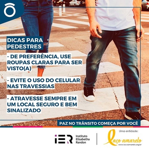 O pedestre também pode ajudar a tornar o trânsito seguro. Sempre que for circular a pé, use roupas claras, evite distrações como o uso do celular e atravesse em um local seguro e bem sinalizado.